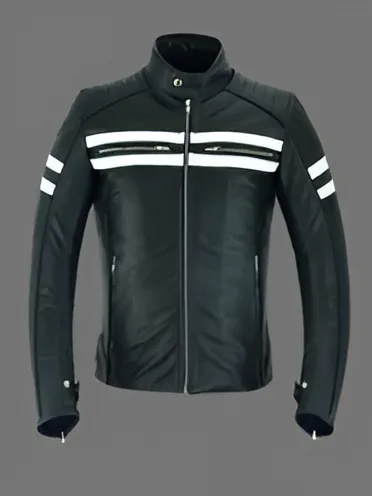 Made from 100% genuine cowhide top-grain leather, this motorbike jacket delivers durability, comfort, and premium protection. It features YKK heavy-duty zippers, removable protectors on the shoulders, back, and elbows, and a soft mesh lining for a smooth inner feel. Adjustable cuffs and waist provide a custom fit, while reflective white panels enhance visibility for safer night riding. Perfect blend of safety, comfort, and classic biker style.